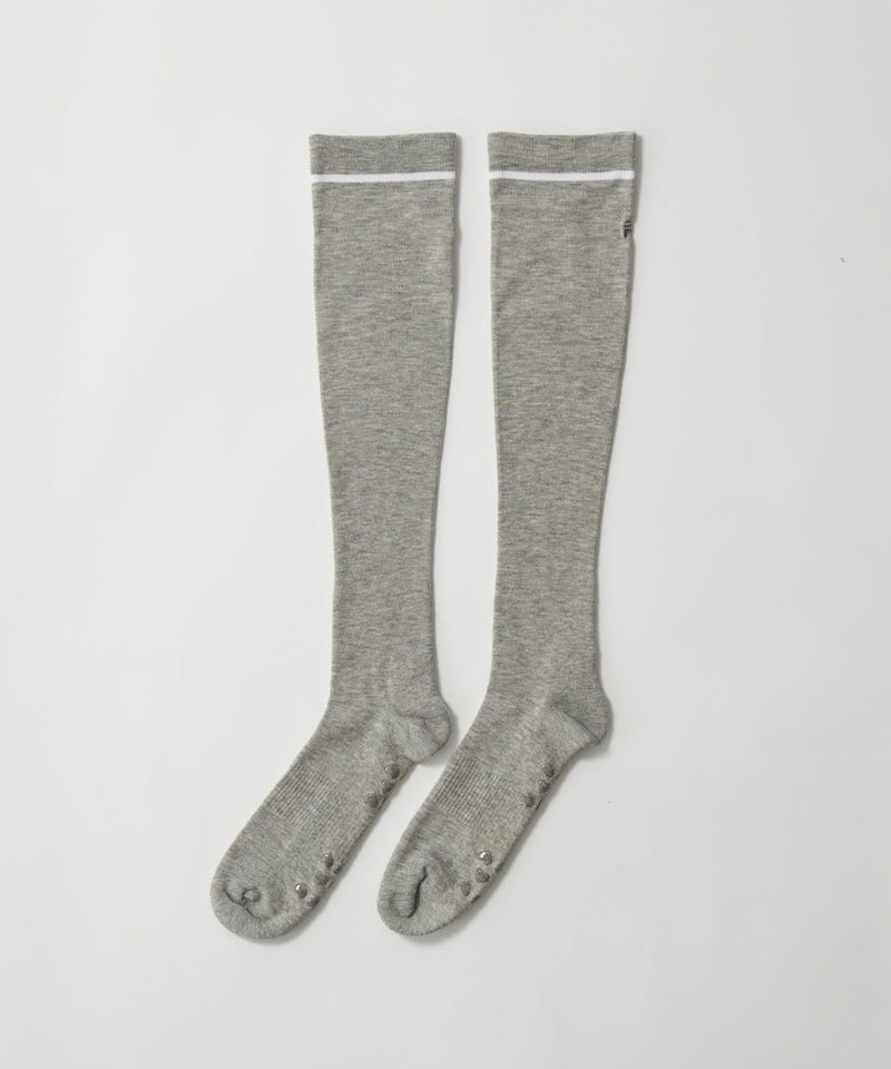スッキリ感覚が味わえる段階着圧設計のハイソックス。幅広いコーディネートに活躍するシンプルデザイン。足底パイルやサポート編みで、プレイをサポート。