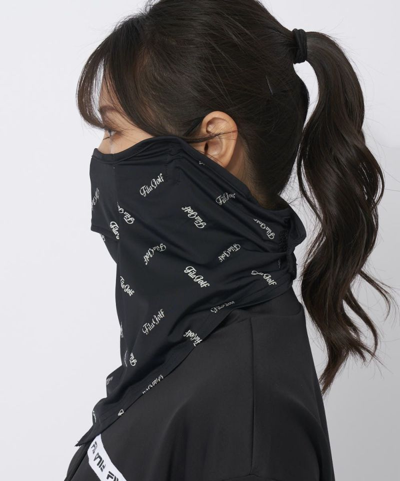 鼻下部分に通気口のあるフェイスマスク。接触冷感の機能糸を使用したベア天竺にグリッタープリントで飛び柄を施した素材を採用。耳までカバーします。