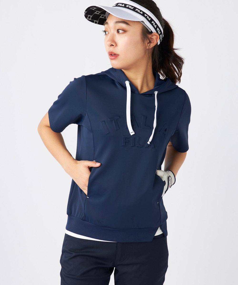 無駄を削ぎ落としたミニマルなプルオンタイプで、都会的なスポーティーさを表現しました。ダンボールニット特有のハリ感が美しいシルエットをキープし、スイング時の動きもスムーズ。スポーティーすぎないクリーンな表情が、大人のゴルフスタイルを格上げします。