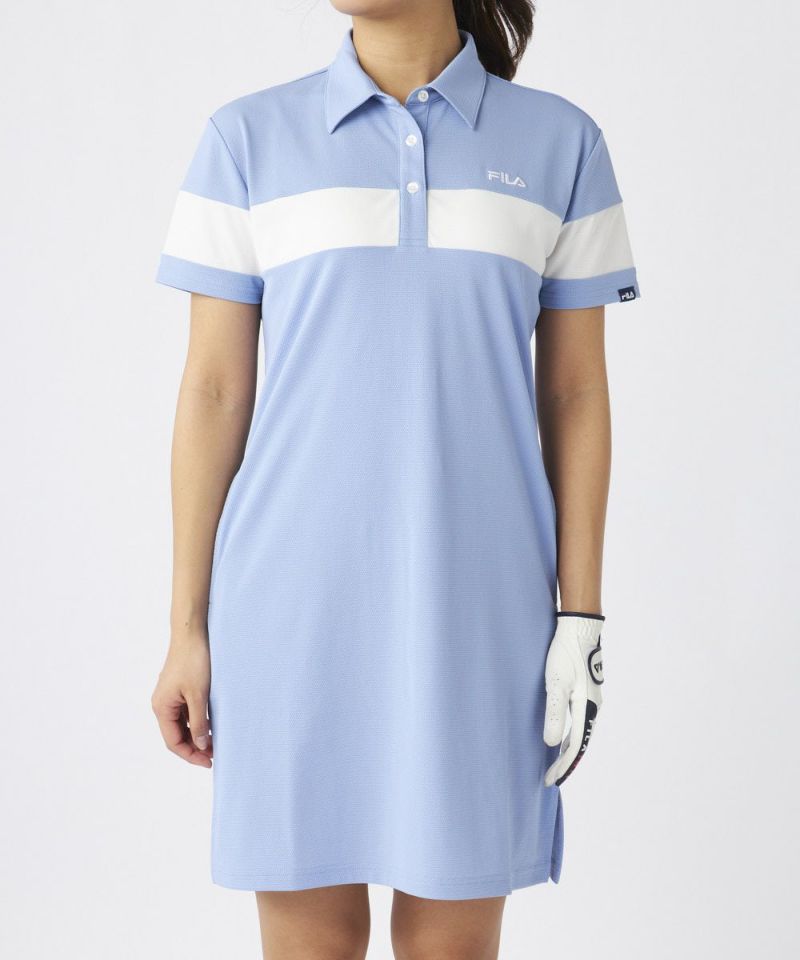 スポーティーでありながらも女性らしいシルエットが魅力のワンピースです。爽やかなライトブルーのカラーに、袖のホワイトのラインがアクセントとなり、シンプルながらも洗練されたデザインに仕上がっています。