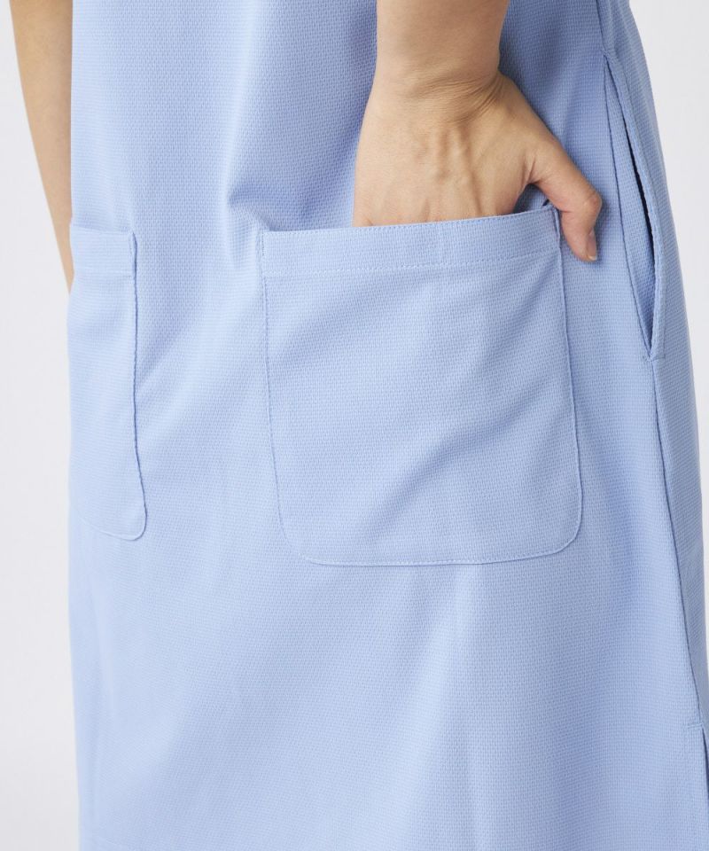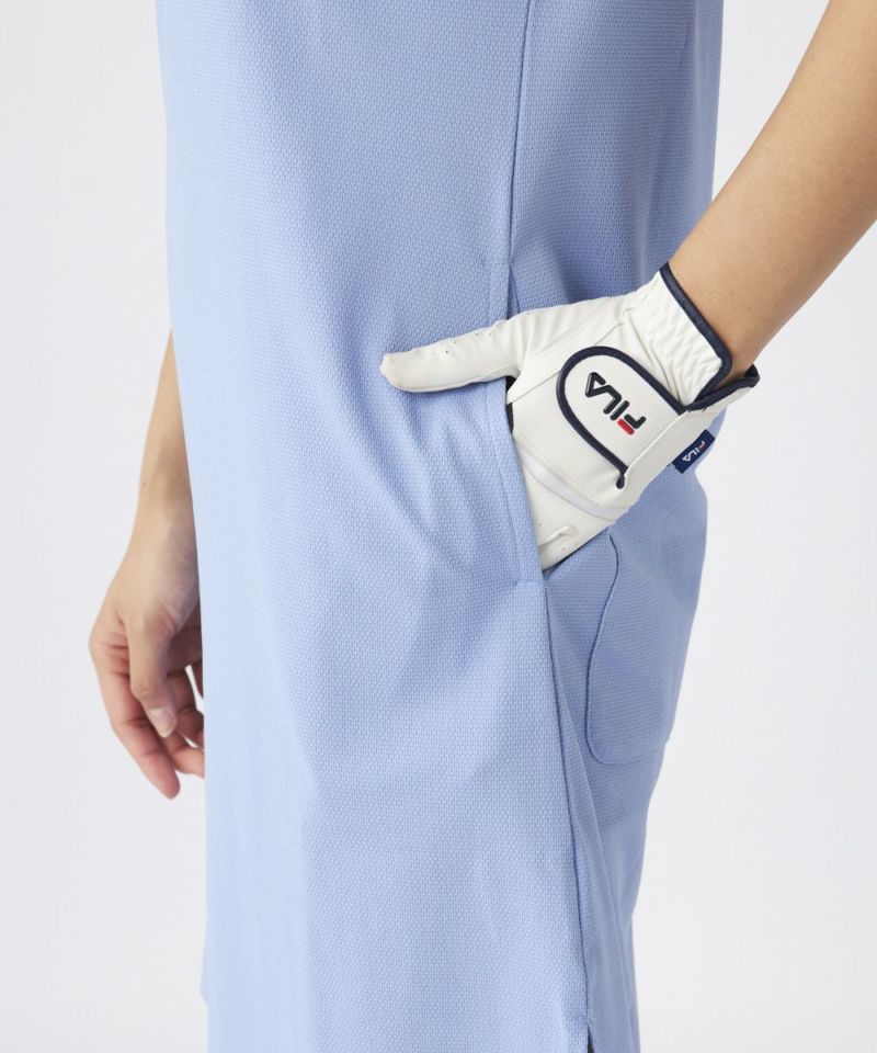 襟付きのポロシャツスタイルを取り入れることで、上品な印象を与えつつ、快適な着心地を実現。サイドにはポケットがあり、ティーや小物を収納できる実用性も備えています。