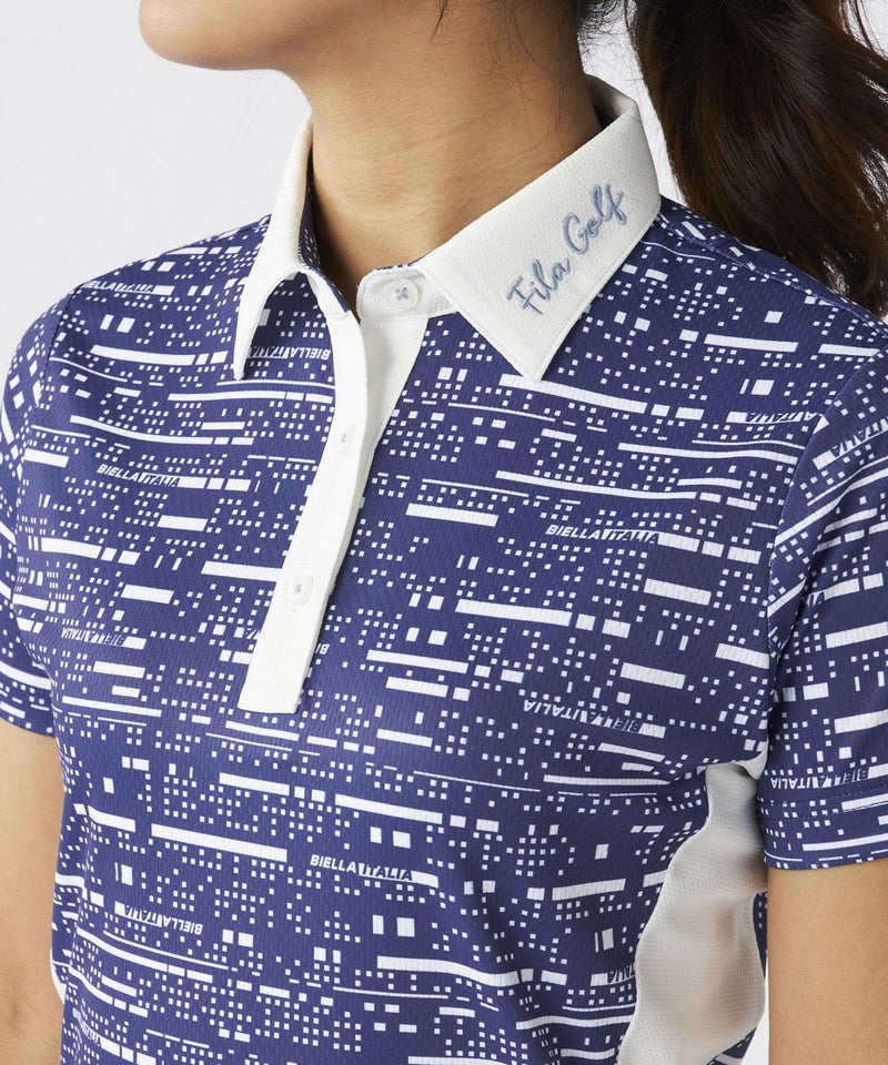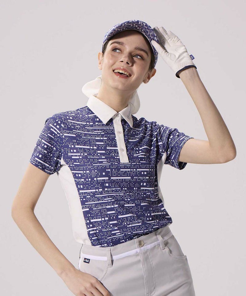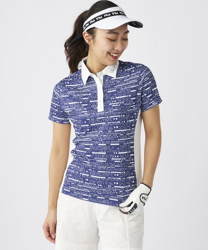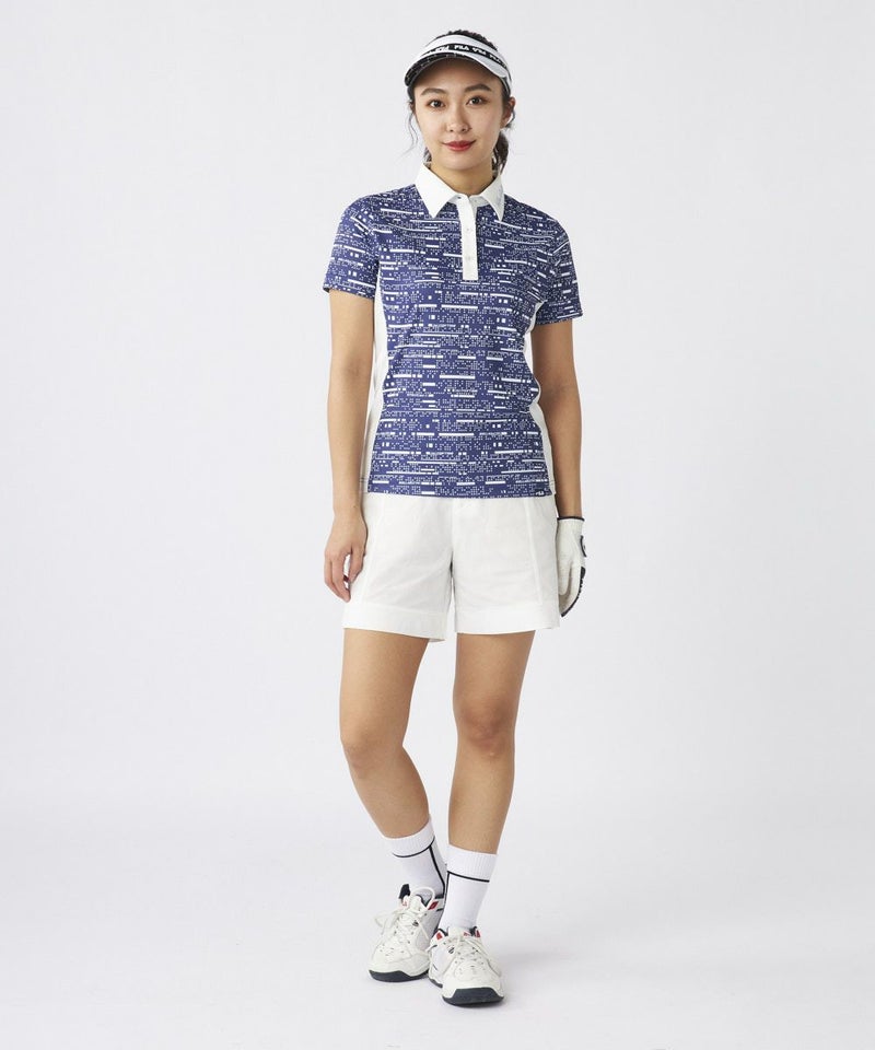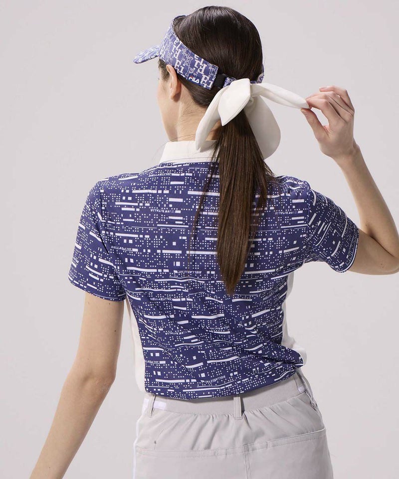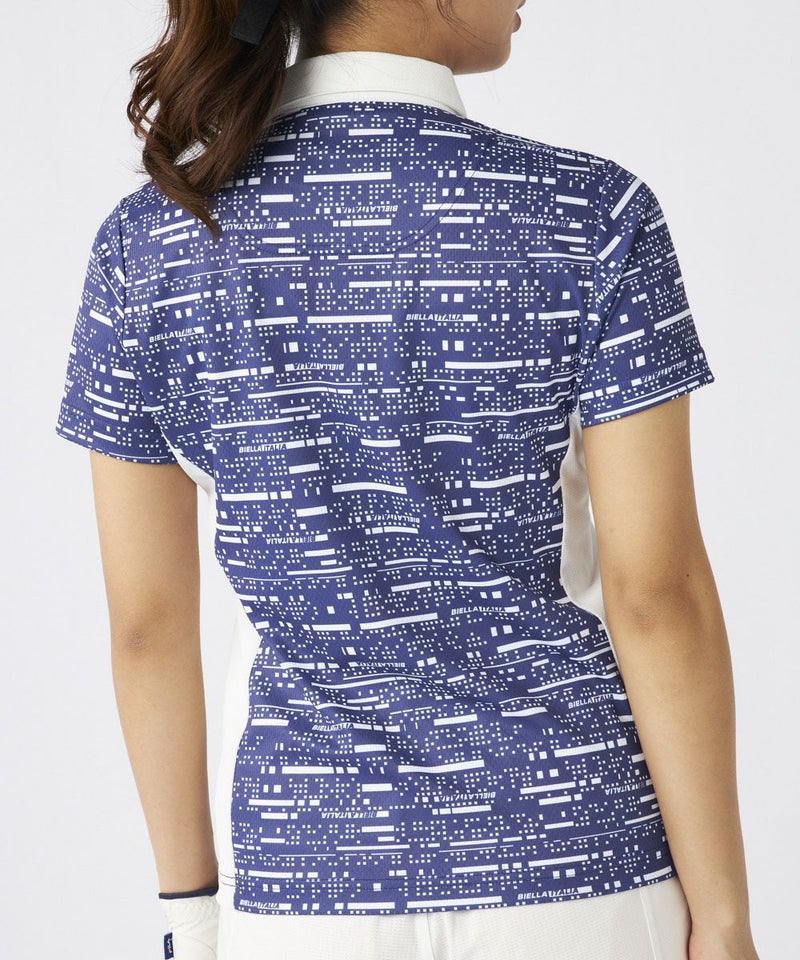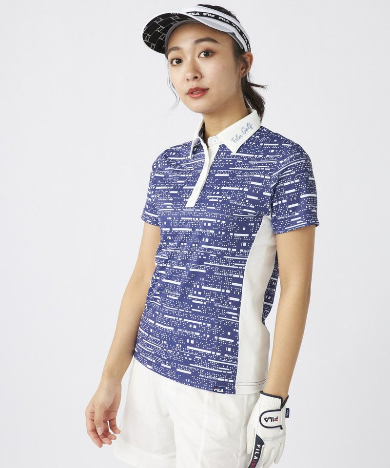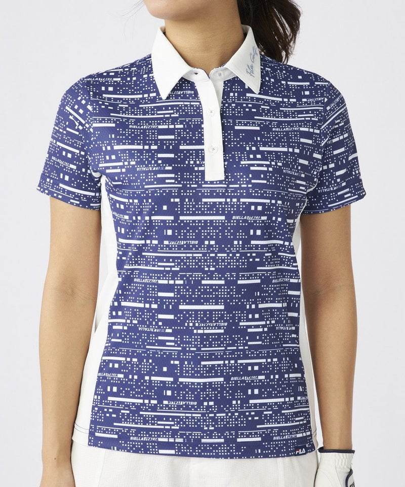デジタル調プリント生地を使用した、カッコかわいい半袖シャツ。メッシュ調のサラサラ素材で、暑い夏の時期も快適。脇の配色使いで細見せ効果を持たせました。