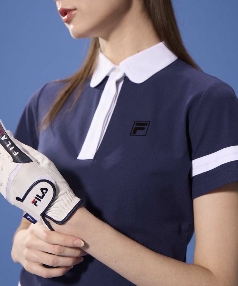 素材は 薄くてサラッとしたポリエステル素材で吸汗速乾、UVカットと高機能なエコ素材です。同シリーズのプリーツスカートとセットアップでの着用がおしゃれ!
