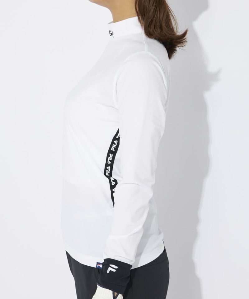 脇のロゴテープがアクセントになったモックネックシャツ。ポリウレタンを使用せず、ポリエステル 100%で優れた伸縮性と軽量を実現したPEARTEXスムースを使用。