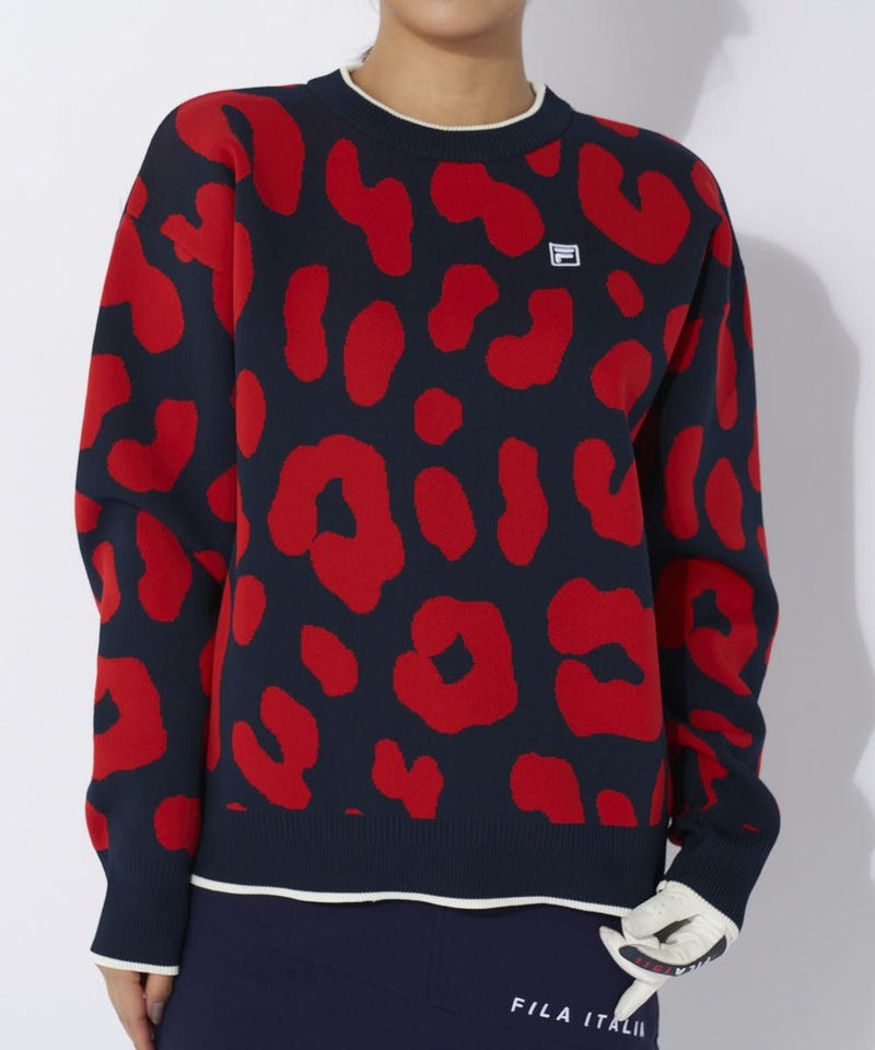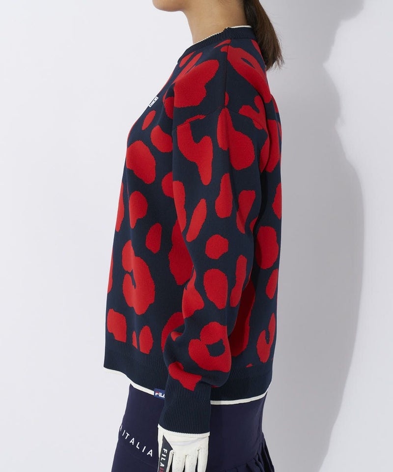 カラーによって柄が違う、選べる柄セーター。ポロ衿はもちろんモックネックシャツとも相性がいいクルーネ ックデザインです。
