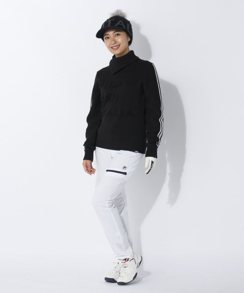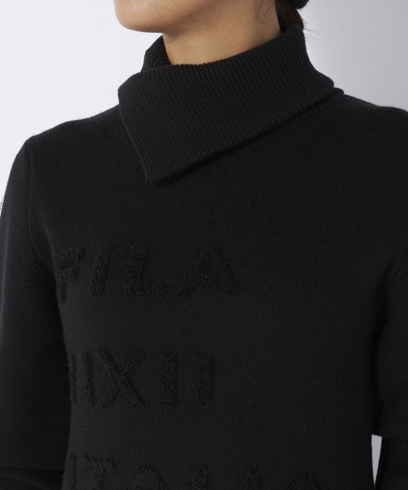 変形ショールカラーが特徴的なセーター。立体感のあるパイルジャガードでグラフィックを表現。
