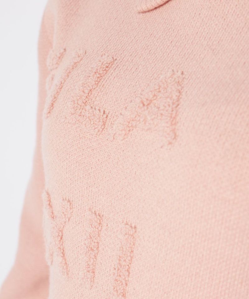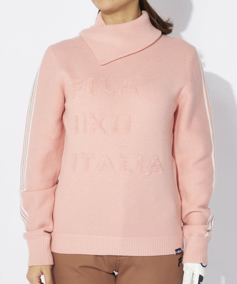 変形ショールカラーが特徴的なセーター。立体感のあるパイルジャガードでグラフィックを表現。
