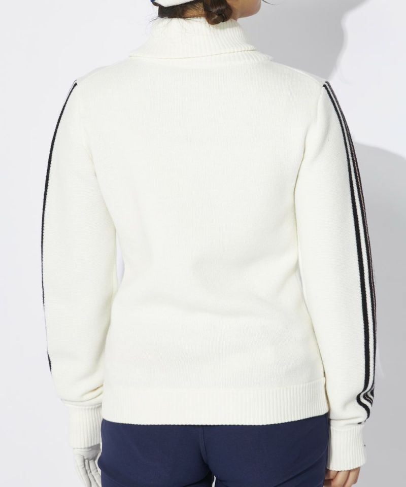 変形ショールカラーが特徴的なセーター。立体感のあるパイルジャガードでグラフィックを表現。