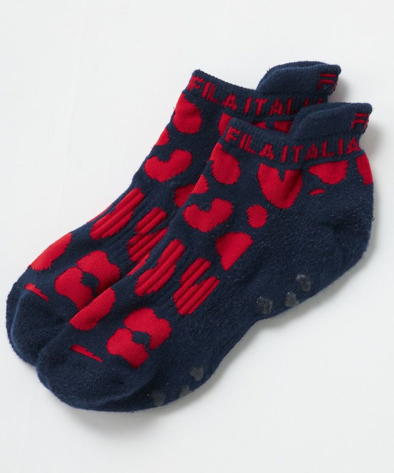 カラーによって柄が違う、ウェアと連動した柄使いのスニーカーソックス。スタイリングのアクセントになるアーガイル、レパード、ドット柄の3柄展開。