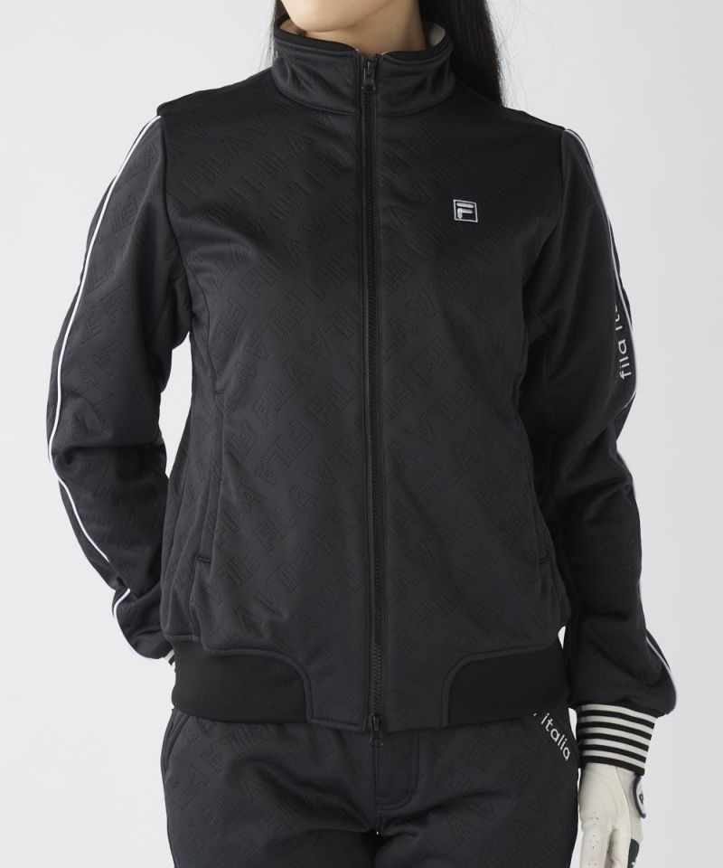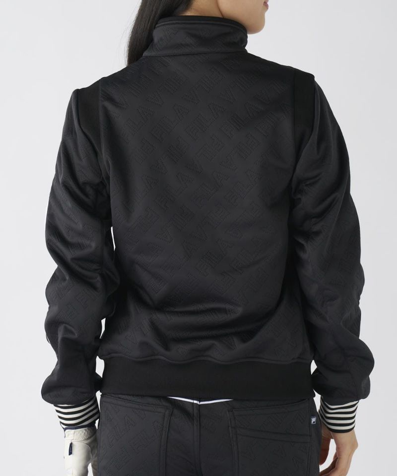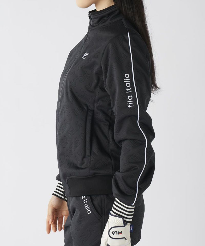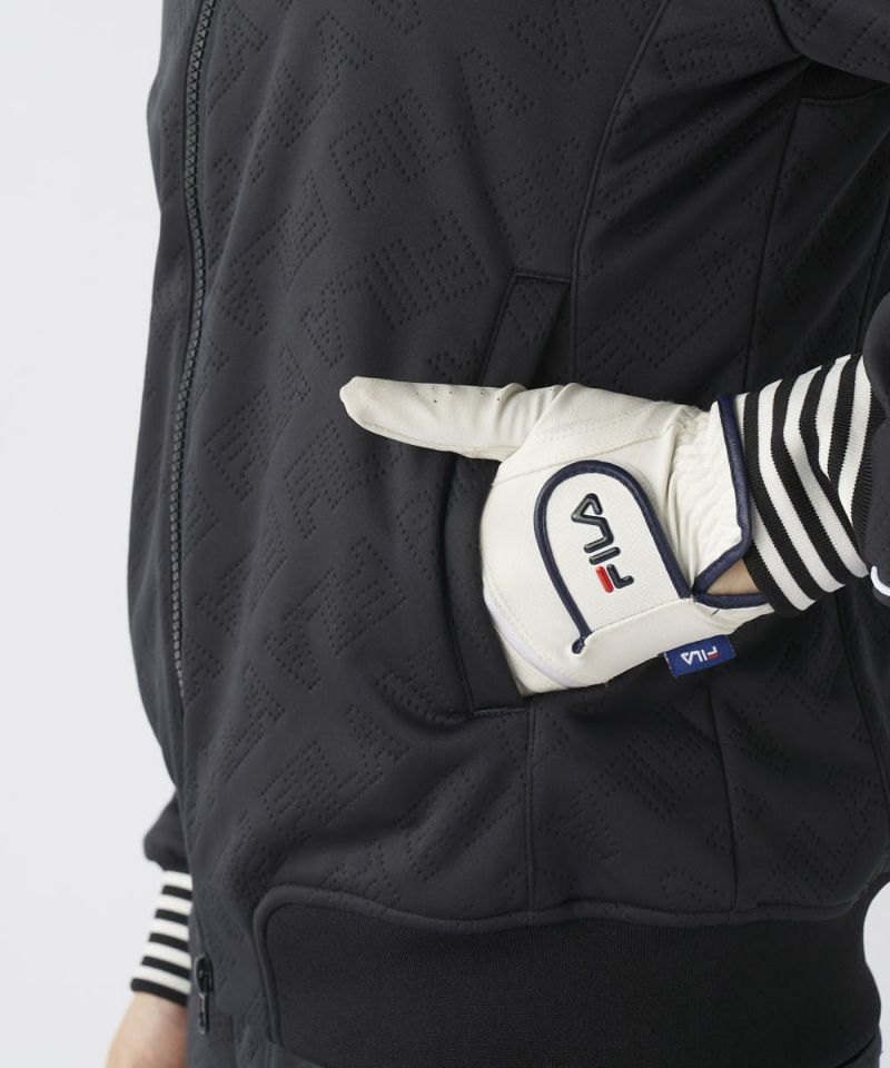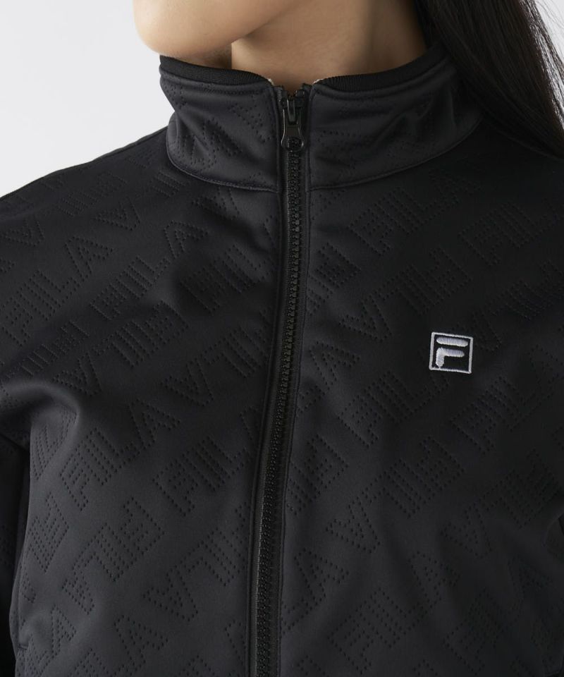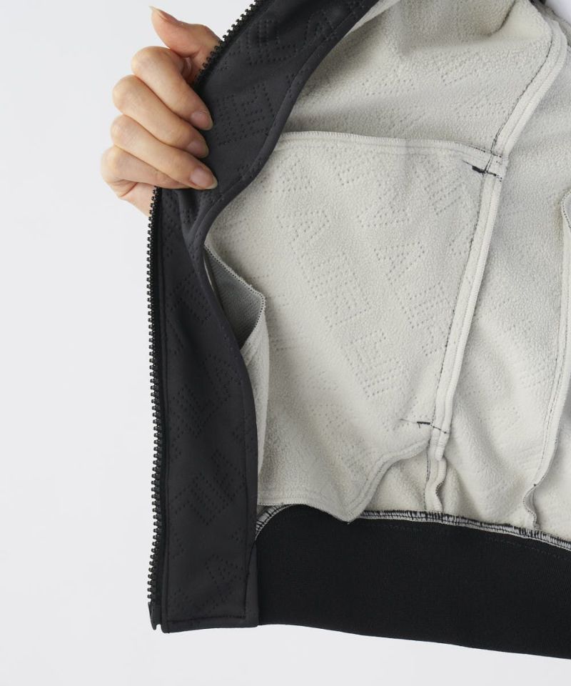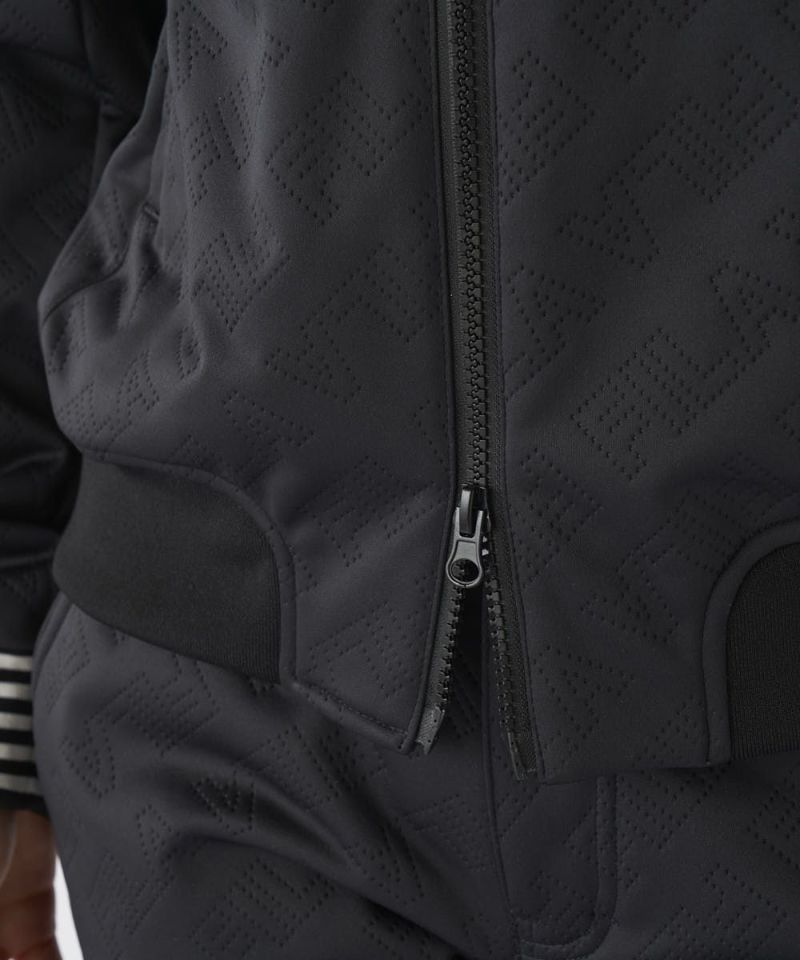 防風・保温・ストレッチ機能のボンディング素材を使用。高周波でタイポグラフィー柄を表現、表面感を持たせました。無地ライクに着用でき、幅広いコーディネートに活躍します。