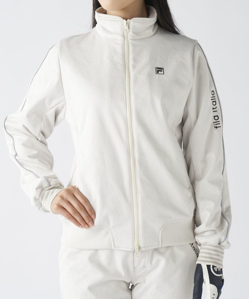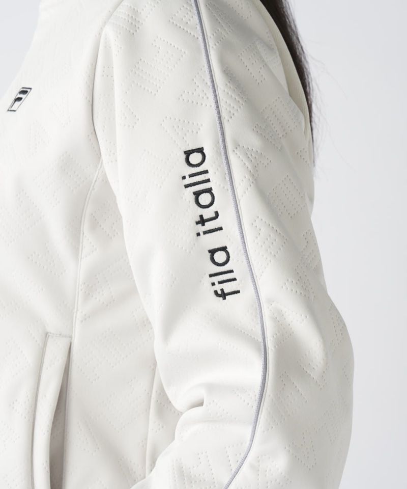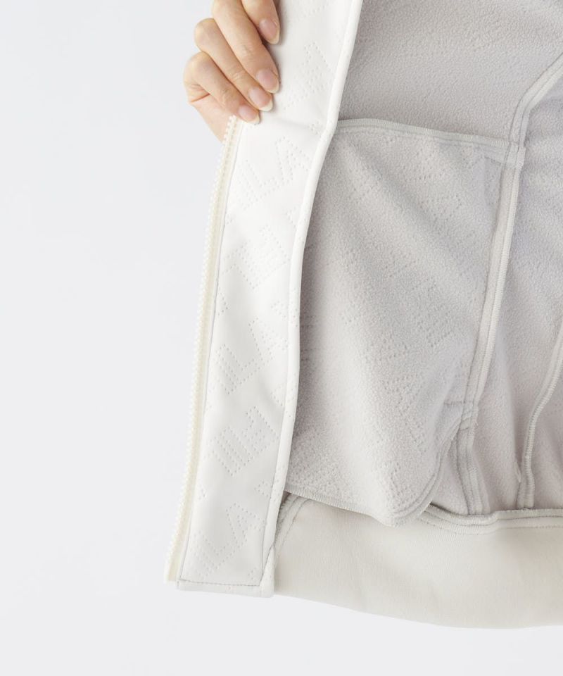 防風・保温・ストレッチ機能のボンディング素材を使用。高周波でタイポグラフィー柄を表現、表面感を持たせました。無地ライクに着用でき、幅広いコーディネートに活躍します。
