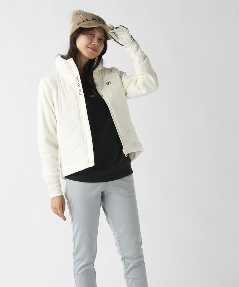 スポーティなタフタと上品なニットの異素材切替が、都会的で洗練された印象を与えるFILAらしいデザインです。計算されたコンパクトなシルエットは着膨れせず、身体のラインをスマートに見せます。ミニマルなディテールと素材のコントラストが、大人のアクティブスタイルにクールなアクセントを添えます。