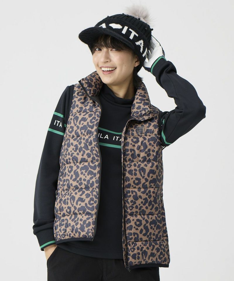 レオパード柄ライトダウンベスト