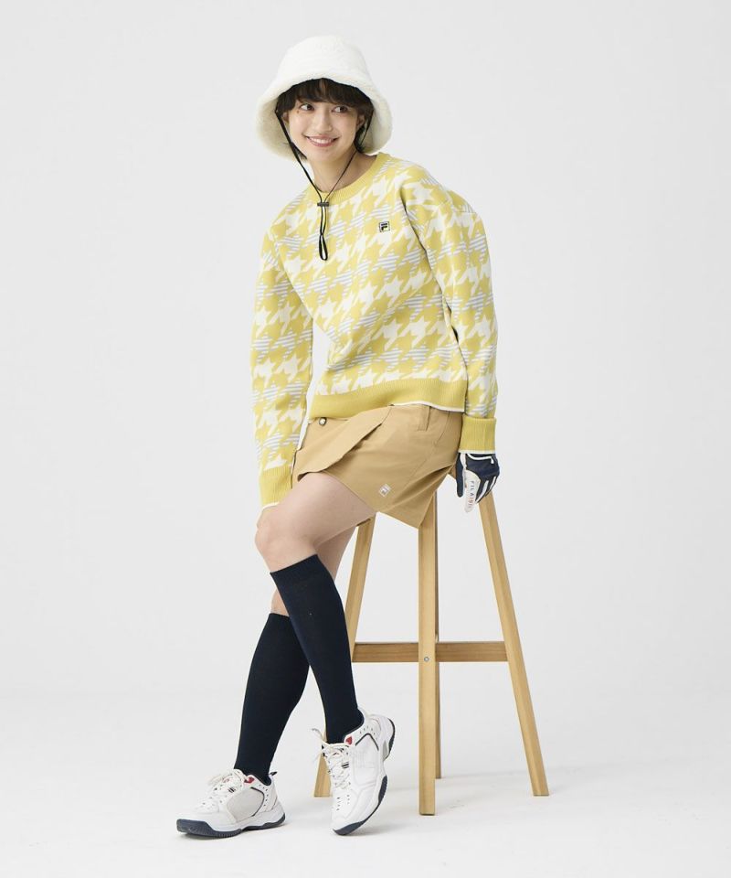 スカートのようなフェミニンな見た目でありながら、ショートパンツの動きやすさを兼ね備えたキュロットタイプ。高めのウエストデザインとすっきりとしたAラインシルエットが、脚長・スタイルアップ効果を発揮します。メタルボタンが上品なアクセントとなり、大人の女性のアクティブスタイルに華やかさを添えます。