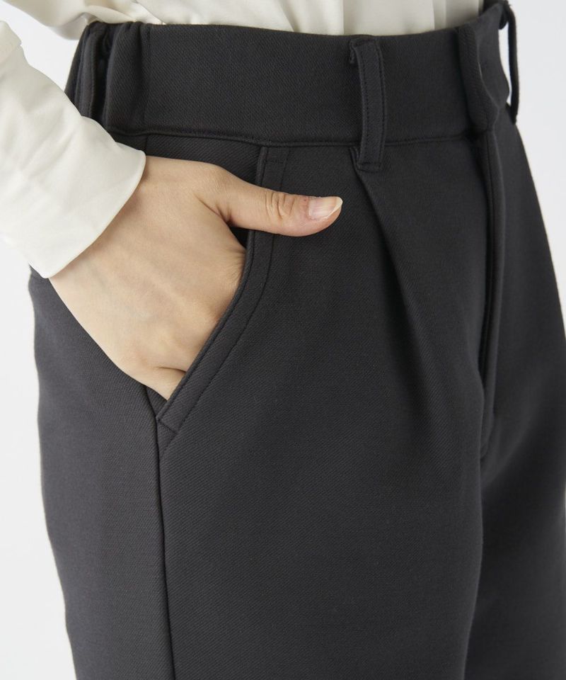 ワンタック入りのワイドシルエットが、程よく身体から離れ、リラックス感とスタイルアップ効果を両立します。落ち感のある素材を使用しているため、ワイドながらも上品な印象に。ウエスト後ろはゴムシャーリング仕様で、快適な穿き心地を叶えます。