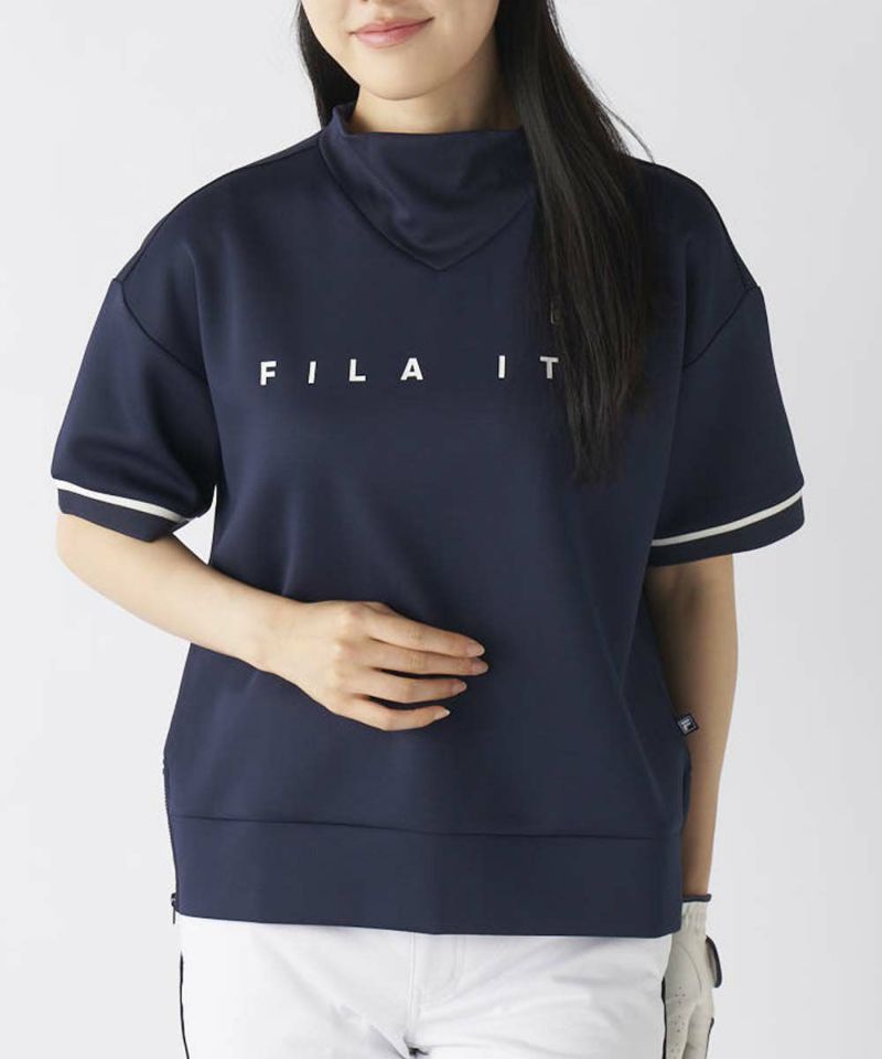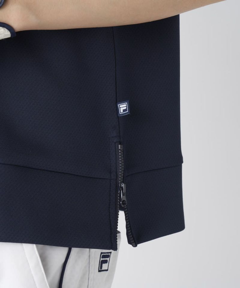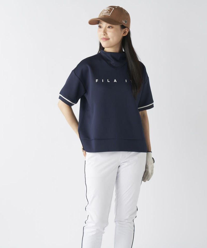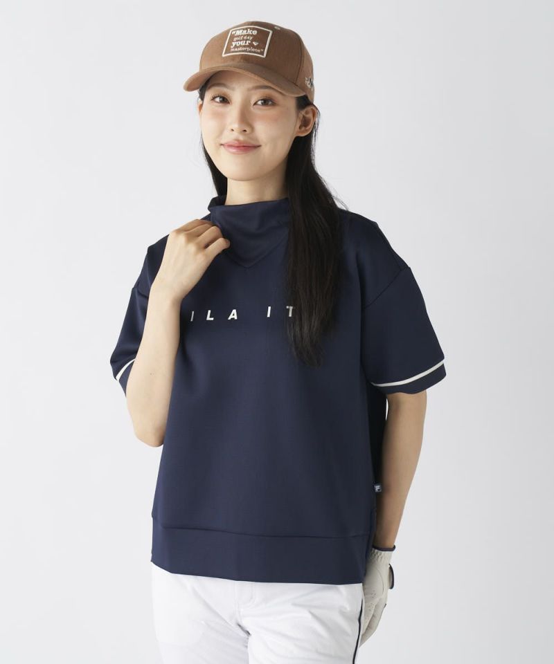 凹凸感のある表情豊かなトップとして、一枚で着用してもシンプルになりすぎないのが魅力です。ゆったりとしたシルエットで、スイングしやすく、アクティブな動きに対応します。