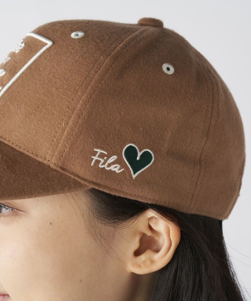 さりげなくあしらわれたハートが女性らしいアクセントになっています。ホール加工を施した軽量のつば芯を採用し、長時間着用しても負担になりにくい軽量性を実現。