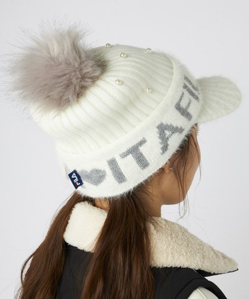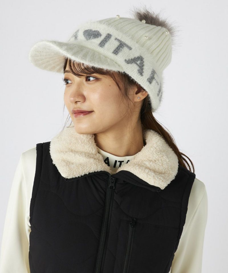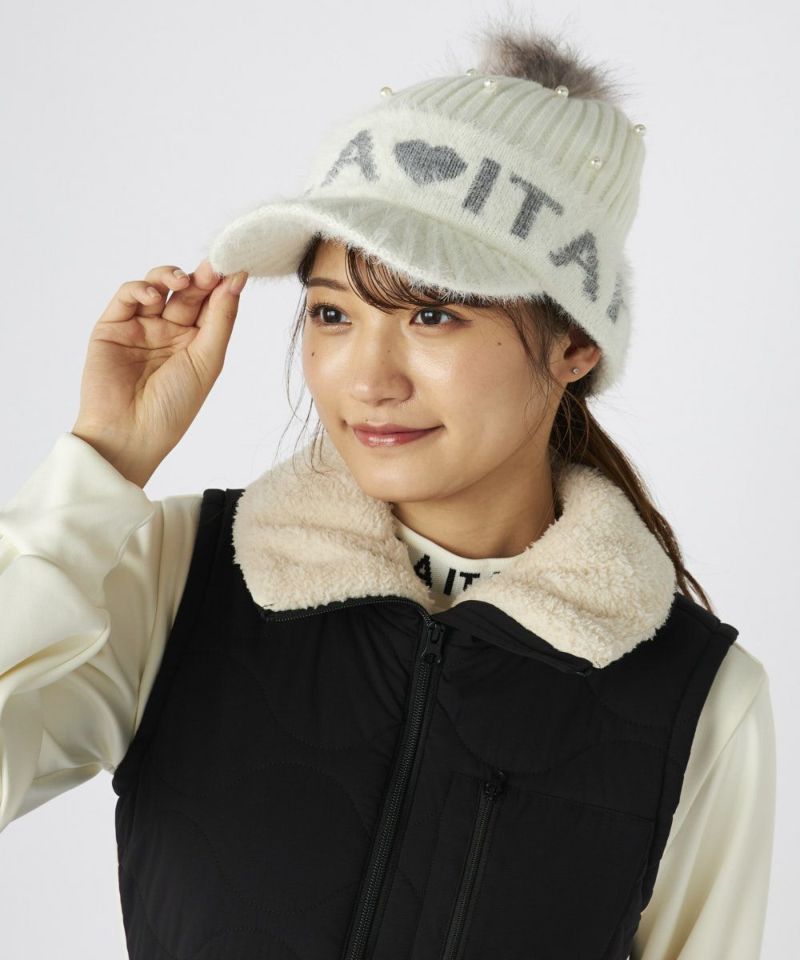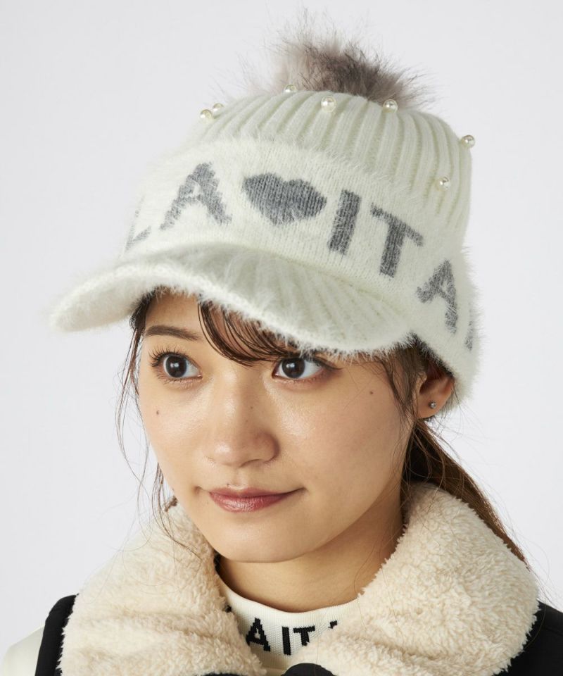 ロゴの間にハートを入れた女性らしいニットキャップです。