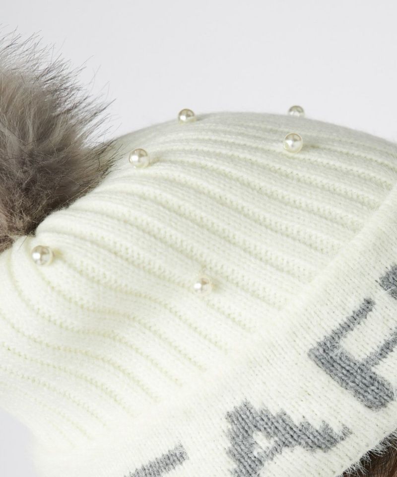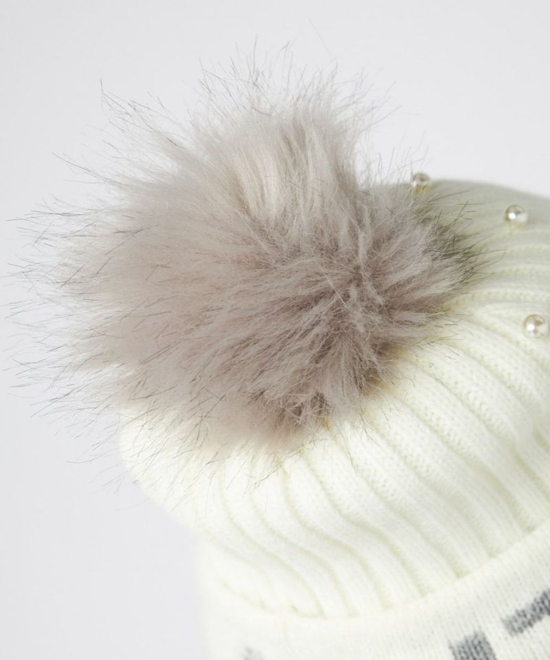 フェイクファーの梵天とフェイクパールの飾りが女性らしさを引き立てます。
