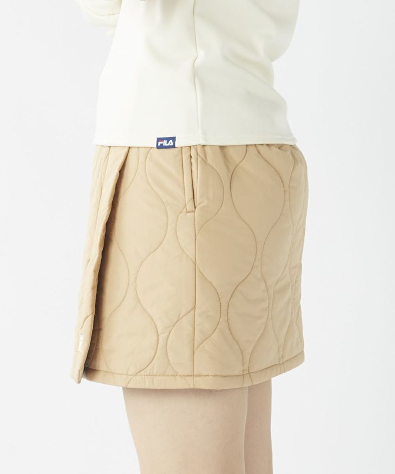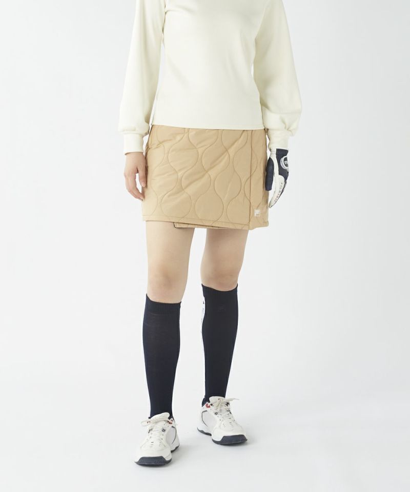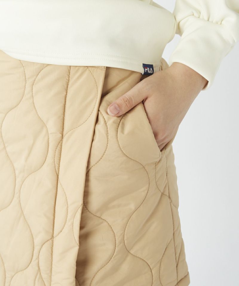 冷たい風をシャットアウト。中綿キルトで暖かいラップスカート