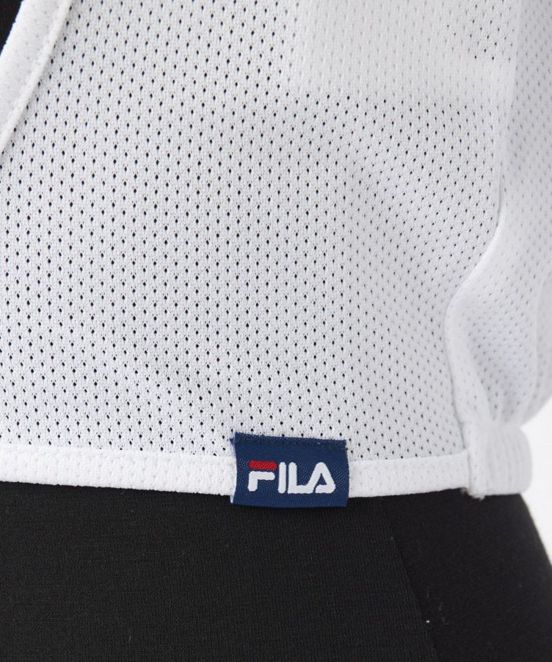 袖部分は接触冷感の機能糸を使用したベア天竺を採用。シャーリング加工を施し女性らしいディティールをプラ ス。グローブに重なる長さでしっかり日除けします。身頃のメッシュ素材は皮膚接着面積が少ない為汗をかいてもべとつかず蒸れを軽減します。
