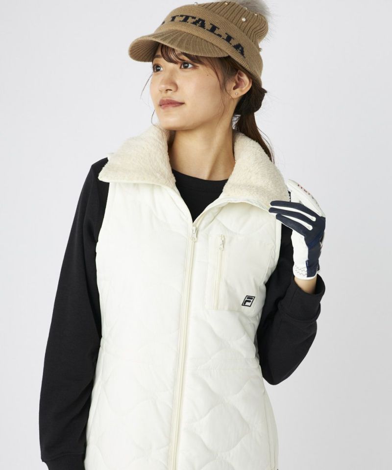 ストレッチタフタに中綿を施したキルト素材を使用。撥水加工、保温、蓄熱、ストレッチといった多機能性を備え、秋冬のラウンドを全天候で快適にサポートします。特に背中部分には蓄熱裏地を採用、また脇はストレッチ性の高いボンディング素材で切り替えることで、暖かさとスイング時の動きやすさを徹底的に追求しています。