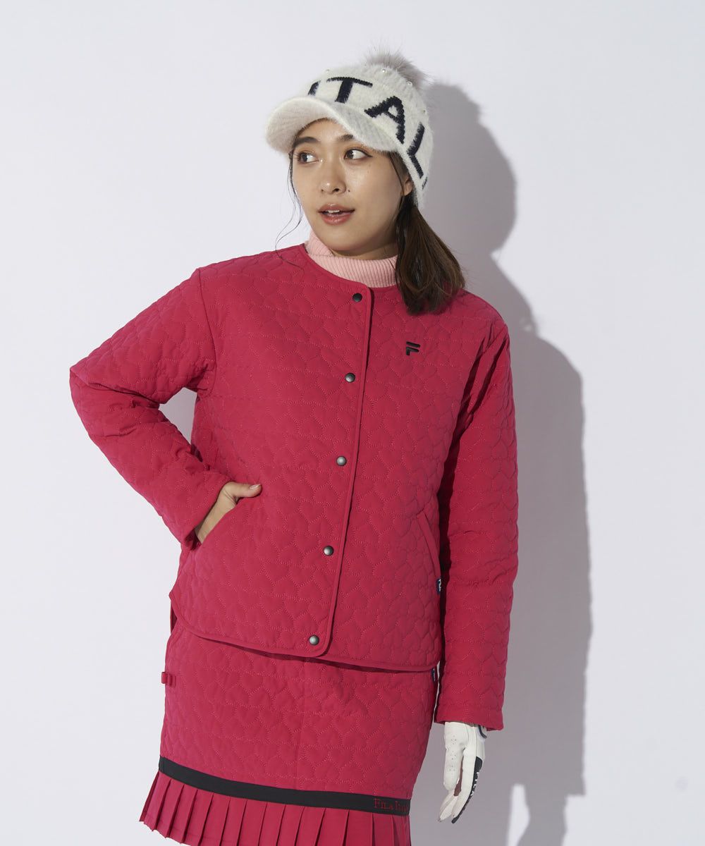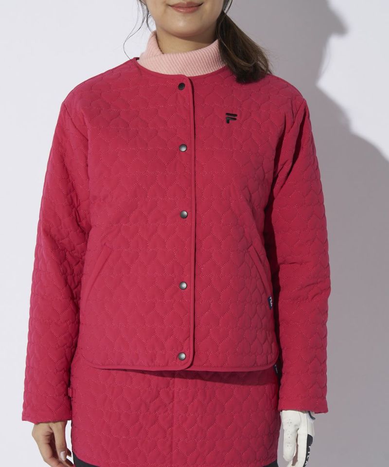 中綿ノーカラーブルゾン/キルティング/ハート柄|4WAYストレッチ/撥水加工