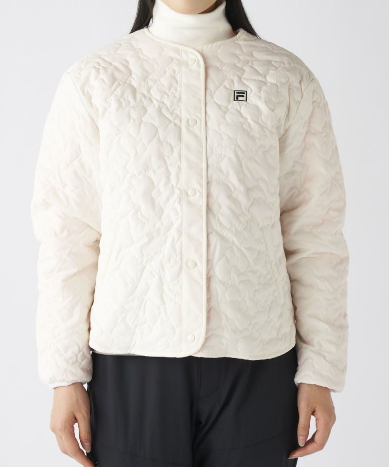 高周波キルトによって表現されたタイポロゴ柄が、シンプルながらもFILAらしい遊び心と都会的なセンスを醸し出します。スポーティすぎない上品なデザインは、大人の女性のアクティブスタイルに最適。コンパクトかつ計算されたシルエットは、着膨れしにくく、スタイルアップ効果を発揮し、洗練された印象を与えます。
