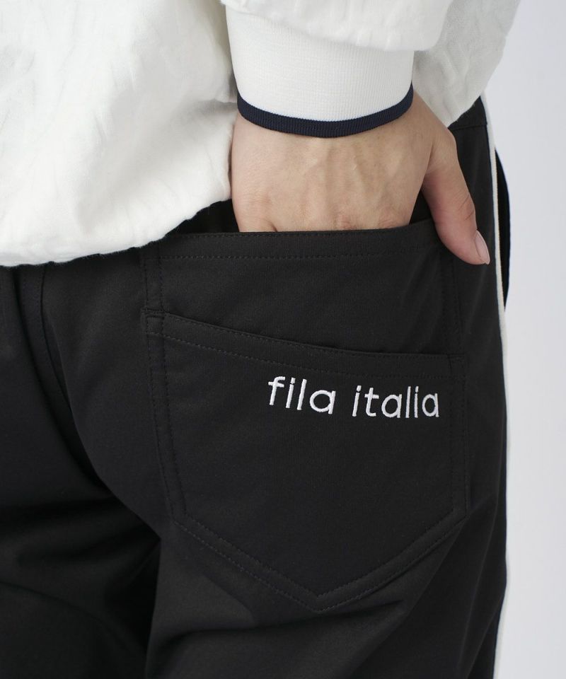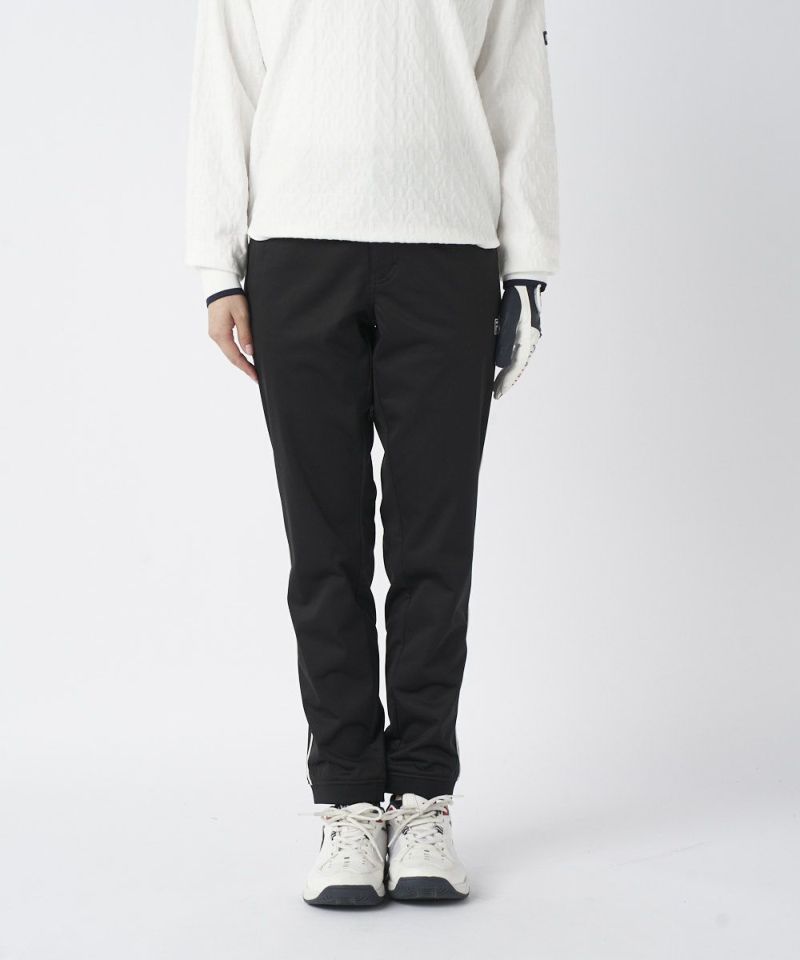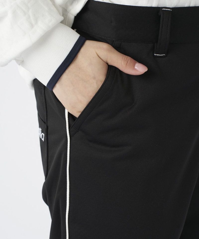 シャープでスッキリとしたテーパードシルエットが、レッグラインを美しく見せます。前振りに配したサイドの配色パイピングがスポーティなアクセントとなり、視覚的なスタイルアップ効果も発揮。ウエスト後ろと裾のリブ仕様でフィット感を高め、アクティブな大人の女性にぴったりの洗練されたデザインです。