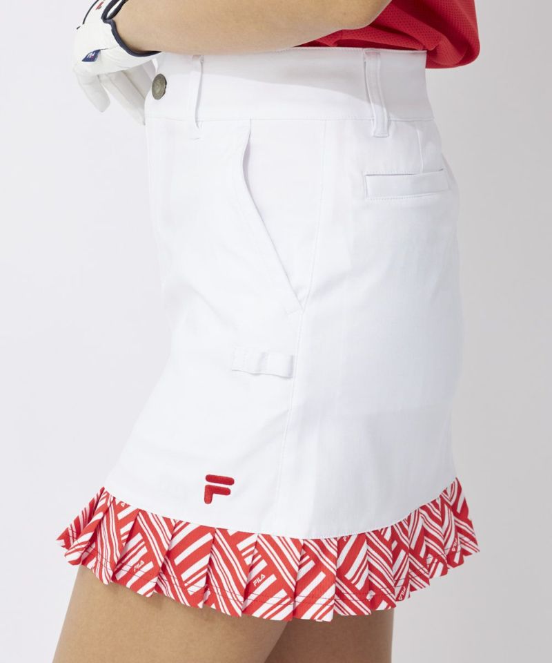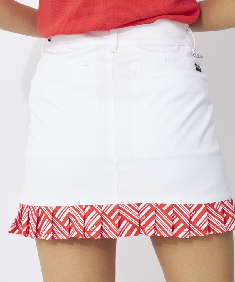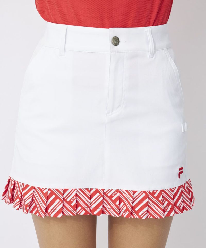裾のプリント柄プリーツで可愛らしさを添えたデザインのスカート。