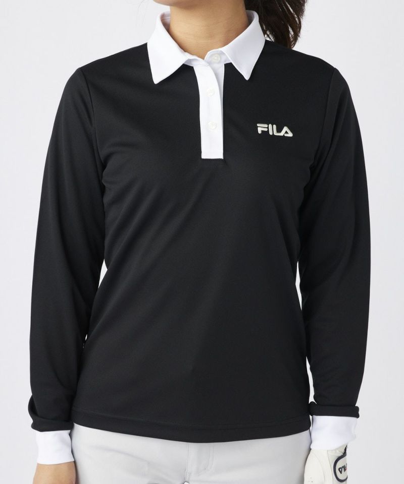 衿のバイカラーがかわいい長袖ポロシャツ。ベーシックなデザインなので、スカート、パンツ選ばずコーディネートを楽しめます。
