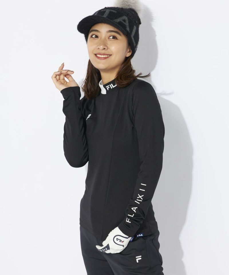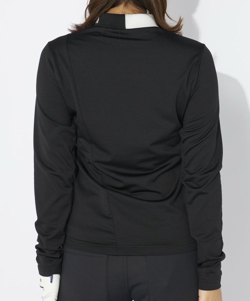 細見えするアシンメトリーな斜め切替と、ジャガードの衿リブが特徴のハーフジップシャツ。静電防止機能付きで空気が乾燥して起こる、いやなパチパチを軽減します。