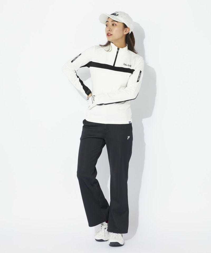 ライン切替とスポーティーなグラフィック使いが特徴のハーフジップシャツ。静電防止機能付きで、空気が乾燥して起こるいやなパチパチを軽減します。