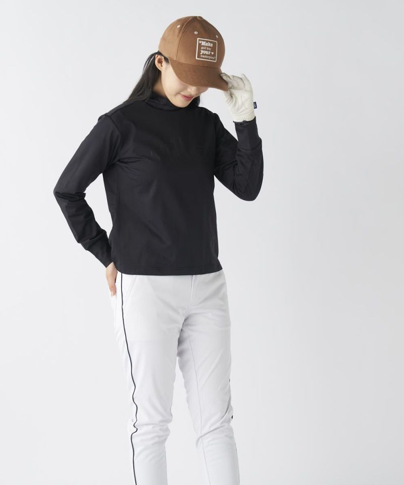 一枚でもインナーとしても着用できる汎用性の高いアイテムです。寒い時期にはベストやアウターとのレイヤードで防寒対策に。ベーシックカラーのボトムスや柄物のアウターとも合わせやすく、機能的かつおしゃれな秋冬のゴルフスタイルに欠かせません。