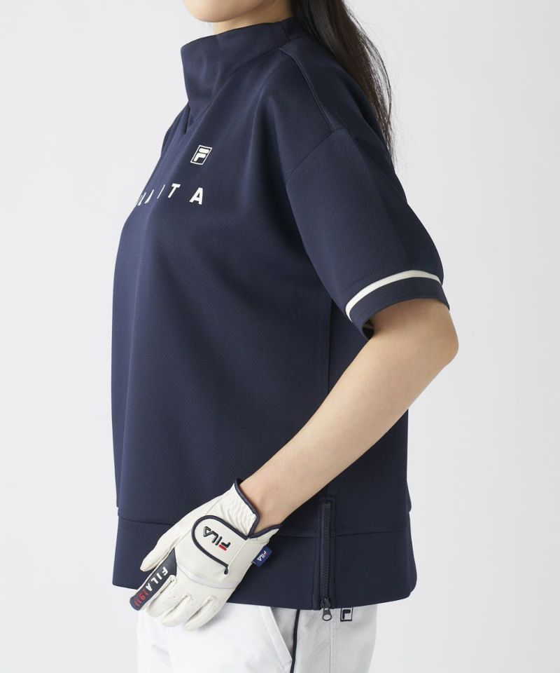 凹凸感のある表情豊かなトップとして、一枚で着用してもシンプルになりすぎないのが魅力です。ゆったりとしたシルエットで、スイングしやすく、アクティブな動きに対応します。