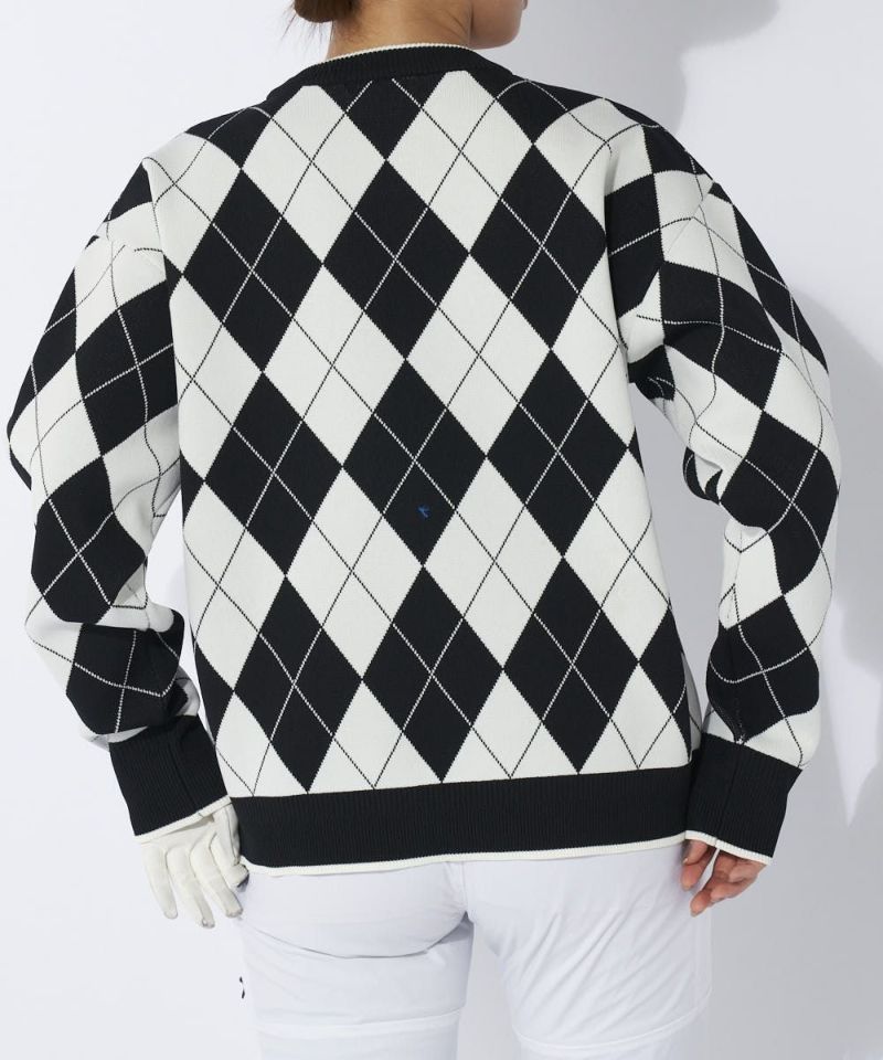 カラーによって柄が違う、選べる柄セーター。ポロ衿はもちろんモックネックシャツとも相性がいいクルーネ ックデザインです。