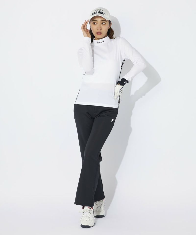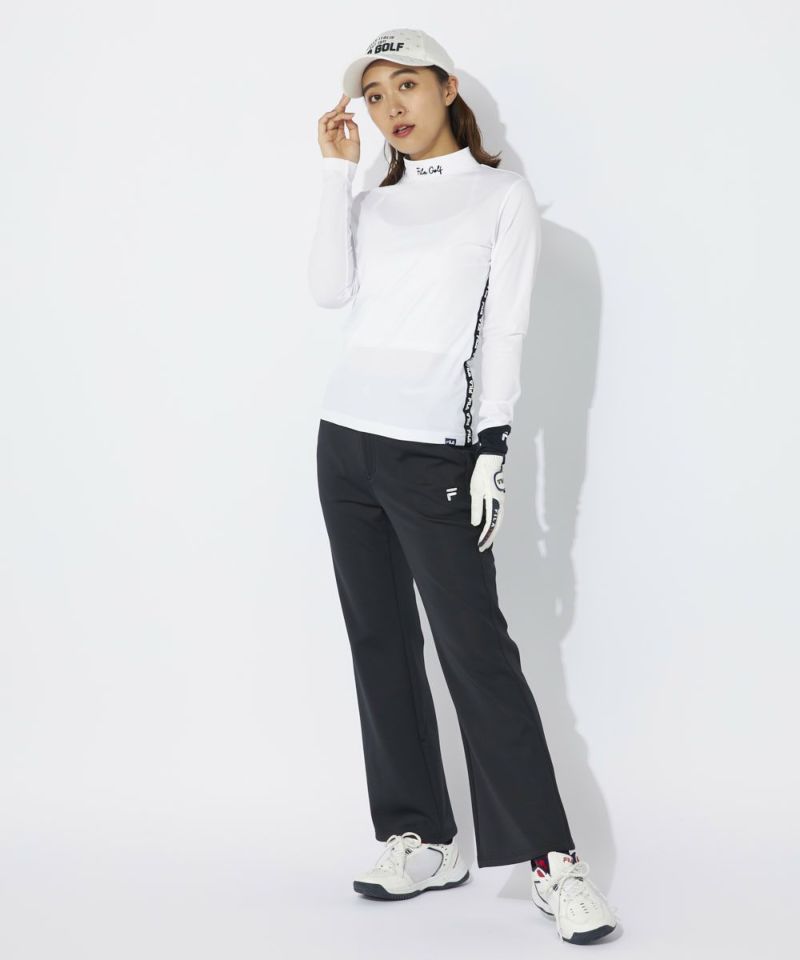 脇のロゴテープがアクセントになったモックネックシャツ。ポリウレタンを使用せず、ポリエステル 100%で優れた伸縮性と軽量を実現したPEARTEXスムースを使用。