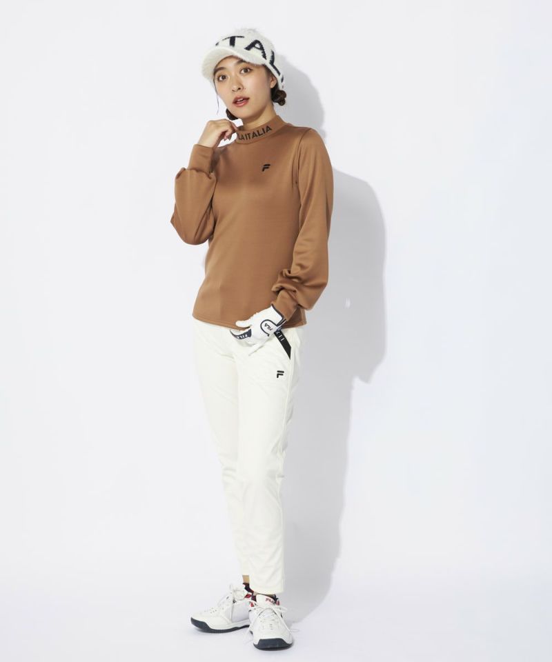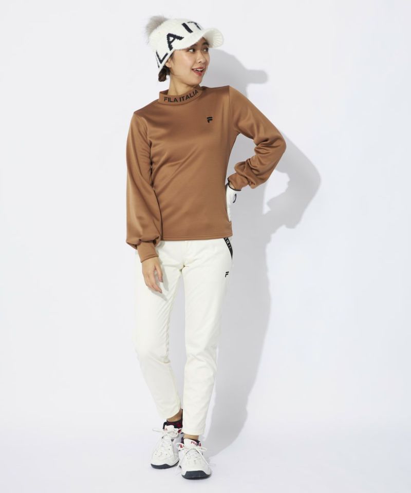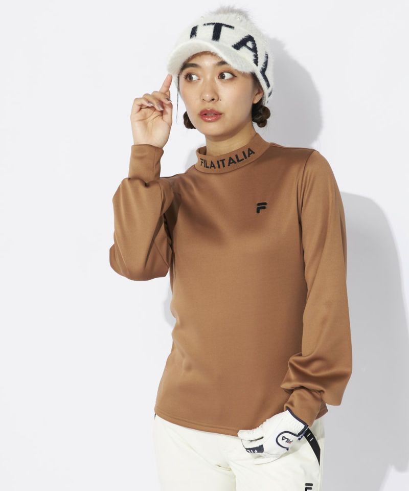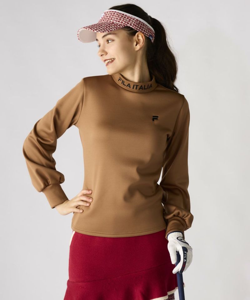 ジャガードのリブ衿がポイントのモックネックシャツ。袖口をふんわりさせたフェミニンなデザイン。裏面がベロア調の柔らかく肌触りの良いストレッチ素材を使用。袖口のボリュームは程よいボリューム感なので、インナーとしてもご利用いただけます。