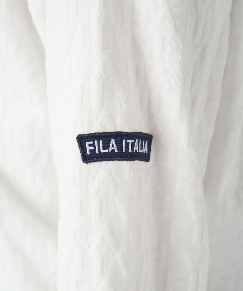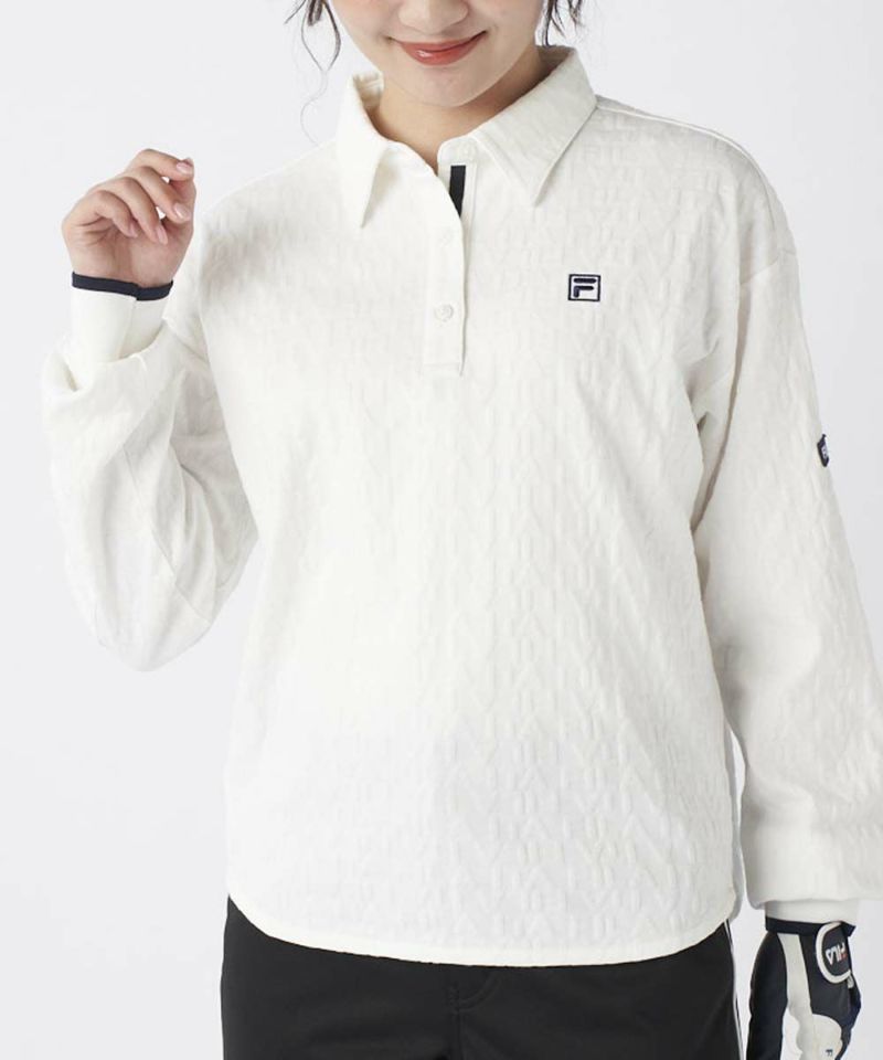 ポコポコとした編地変化でロゴ柄を表現した長袖シャツは、秋の始まりから活躍する一枚です。