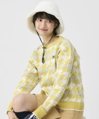 大胆な総柄デザインが目を引くゴルフ長袖ニットです。