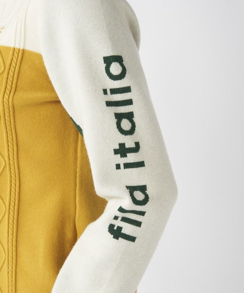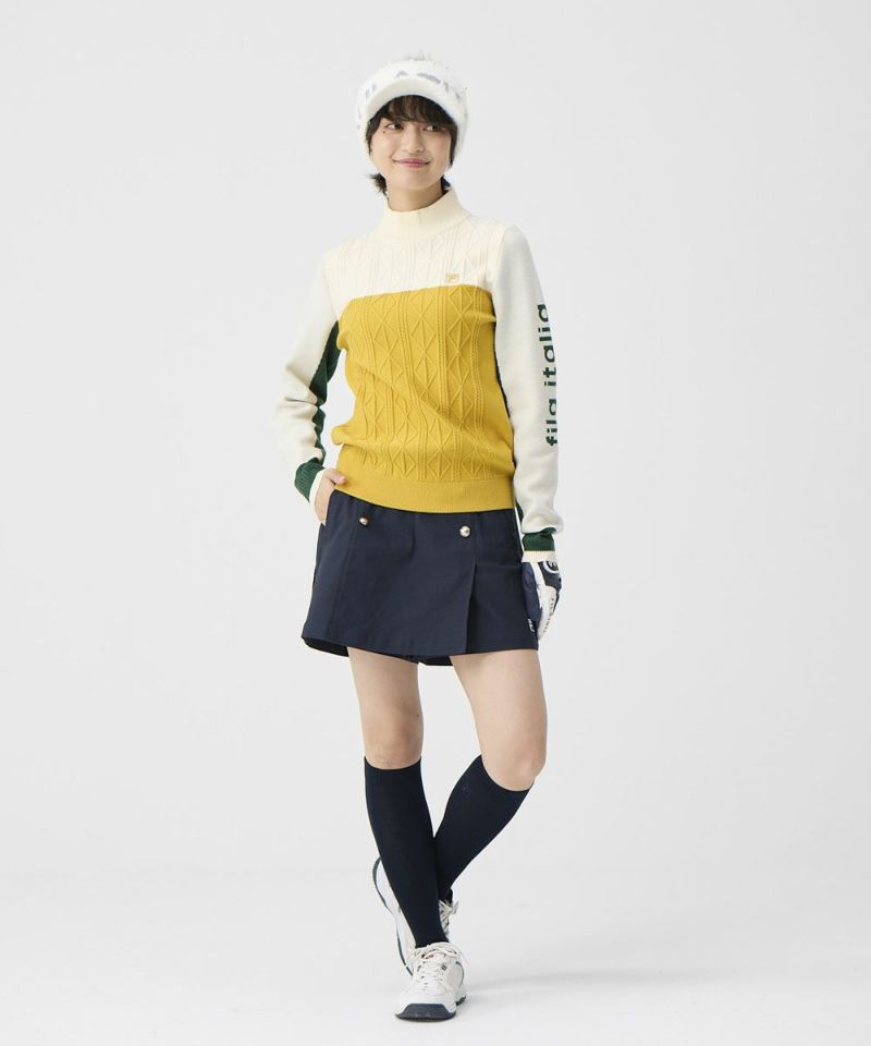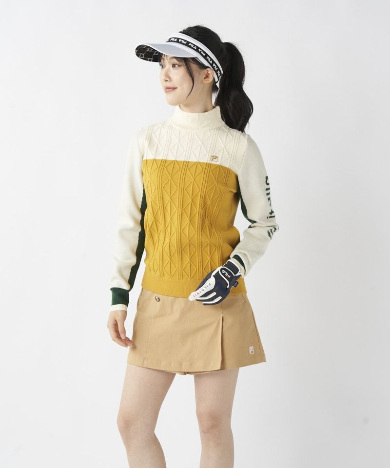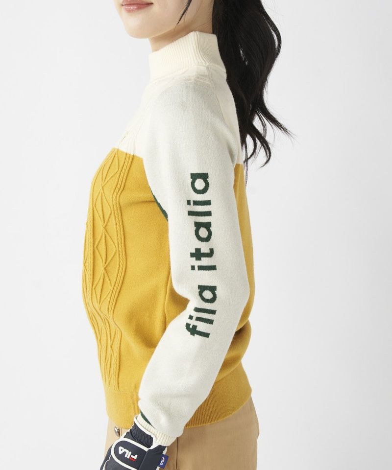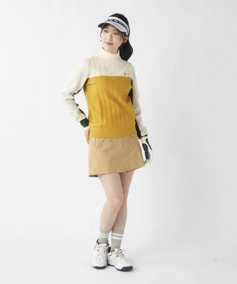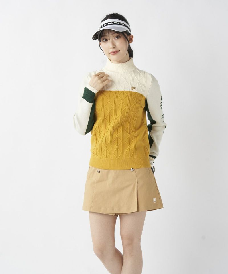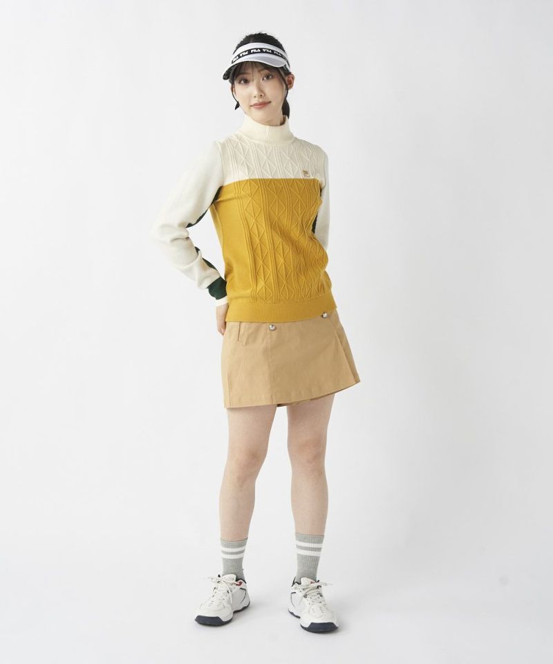 スポーティな切り替え配色とケーブル編みデザインが特徴のゴルフ長袖ニットです。